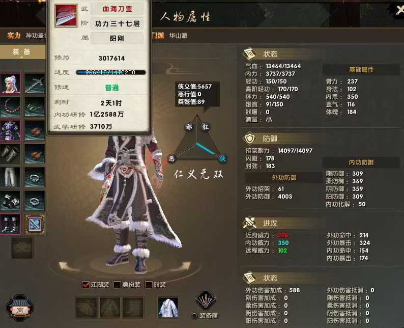 新区,沧海一笑出君子外功爆率三合一+全套带外功伤害减免% 装备:4品套3飞燕-2风花 一把剑铭兵1000+ 筋脉: 6-108 百兽41 寒宵46(号上有5张寒宵残卷) 血刀37-47 武学:武技快剑6层 金蛇6层 外功雪斋6层 封魔6 风物志:6套衣服 1298米尊棍 4688风物质 千劫双锋 至尊风物质凭证*1