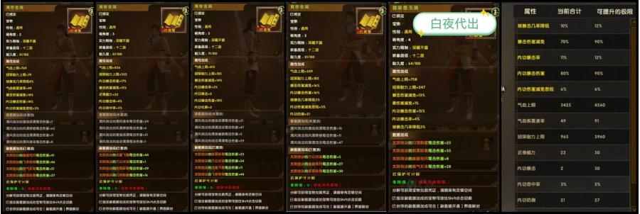 月明沧海出三、四合一混搭金简武当,清风+辟邪(两块爆率三合一,两块降爆忽视四合一,一块爆率酱爆四合一),研修19亿,太极古谱4招,九层小鹿乱撞,战场五件套,玉克己4爆率图解金困兽剑围战无不胜等,一把满铭兵单剑,阴柔两套娃娃,天山1298,混元75活动突破,仓库各种残卷多多,三技能浊泾清渭圈圈,三技能群邪辟易等