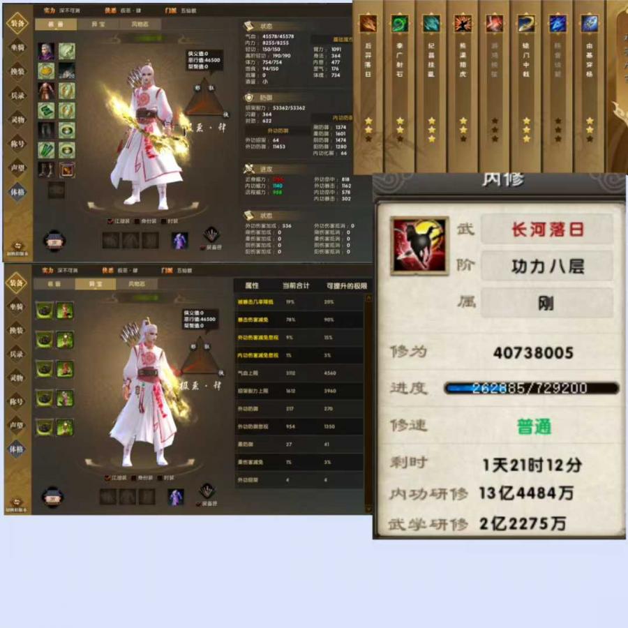剑啸出酱爆三合一明教,所有宝物都带外功防御忽视。娃娃全玉,研修13.4亿,84万兽,带打狗怒招,神箭两招三星,四招两星,图解本金护心,银护脉,极恶肆标签,修为剩余4千万